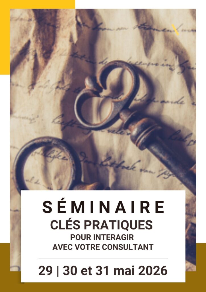 Ce séminaire s’appuie sur cette réalité de terrain. Il offre un cadre structuré ainsi que des repères concrets pour faciliter l’échange avec le consultant.